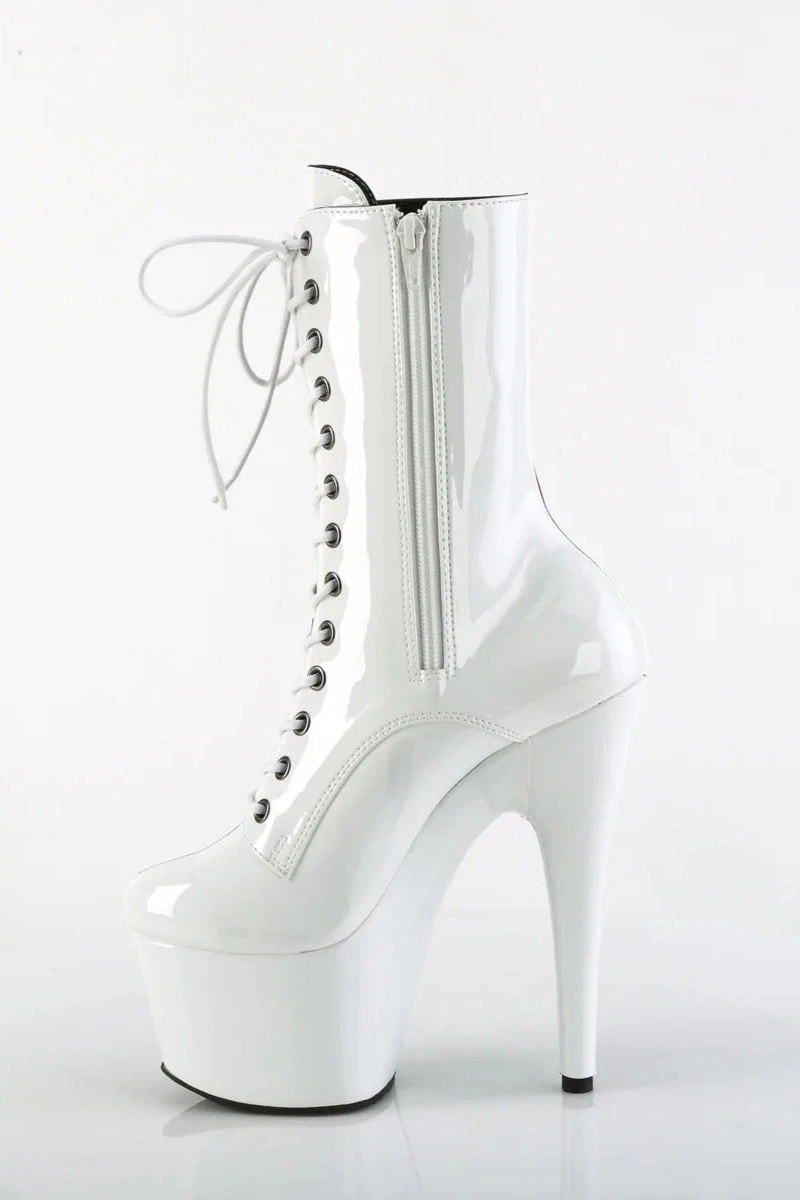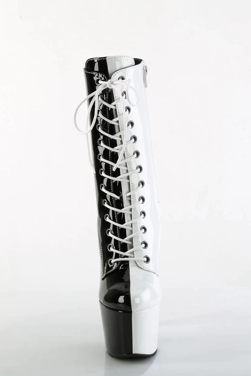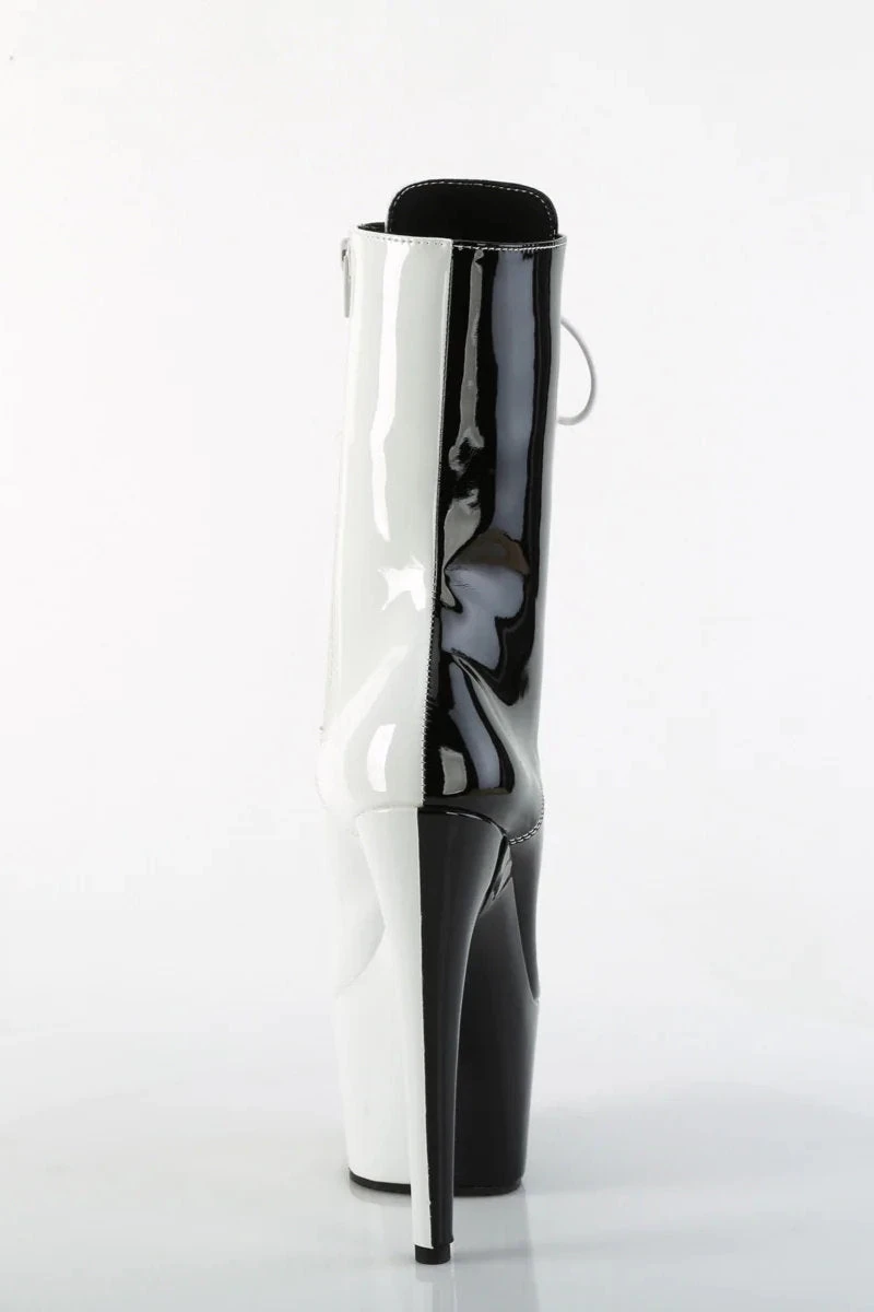 - Patent Black/White Platform | Lace-Up Front Ankle Boot | Inside Zip Closure