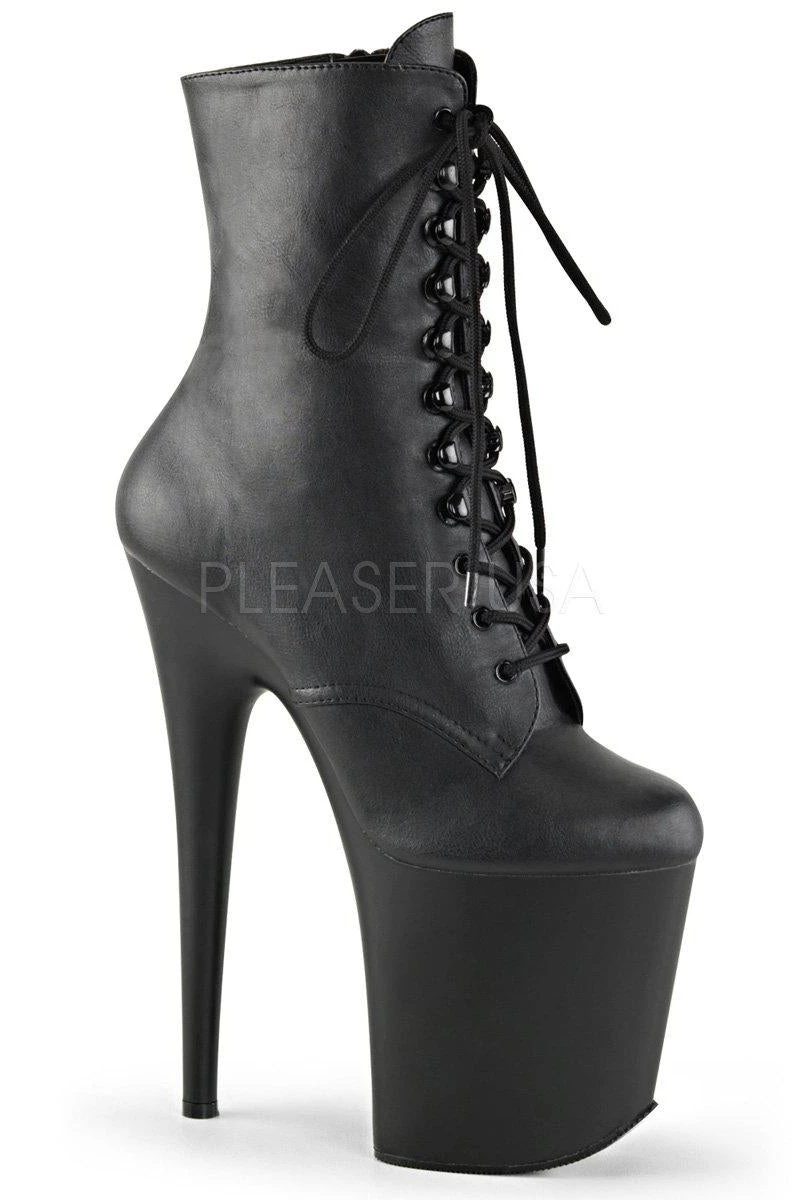 - Matte Black Platform Lace-Up Front Ankle Boot, Inside Zip Closure