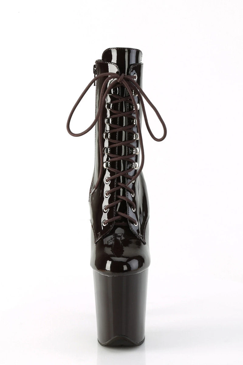 - Patent Coffee Platform, Lace-Up Front Ankle Boot, Inside Zip Closure