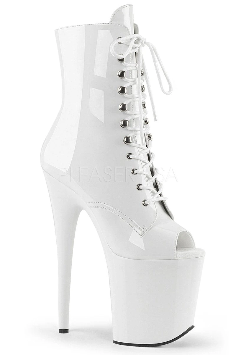 - Patent white Platform Lace-Up Front Ankle Peep toe Boot, Inside Zip Closure
