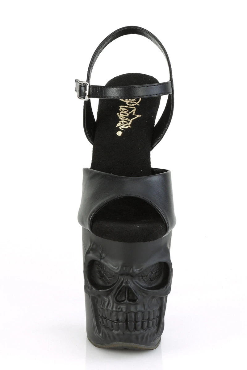 For badass queens or halloween, these PleaserĀ shoes are to DIE for. Featuring a 3D skull on the front of the platform and a finger bone style heel.